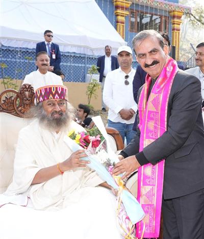 CM offers prayers with Sri Sri Ravi Shankar at Palampur