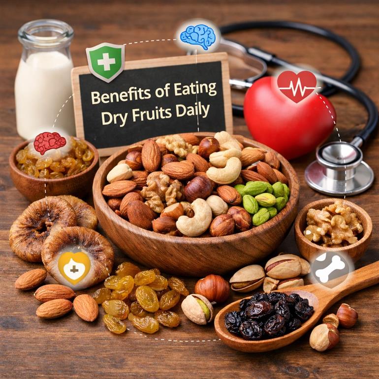 Dry fruits are often called a powerhouse of nutrition. Almonds, walnuts, cashews, raisins, pistachios, and figs, when consumed daily in limited amounts, provide the body with many essential nutrients. According to experts, including dry fruits in the daily diet helps improve energy levels and may reduce the risk of several diseases.