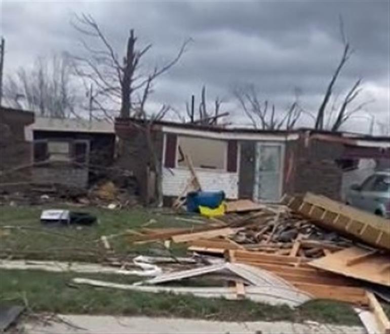 Friday's storms also led to the collapse of a theatre roof at a packed heavy metal gig in Belvidere, Illinois state, leading to one death and 28 injuries.