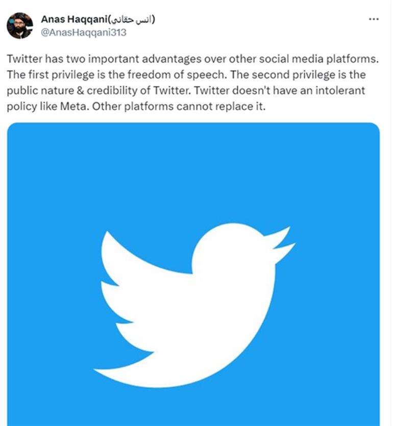 Anas Haqqani, a Taliban thought-leader with family connections to the leadership, officially endorsed Twitter over Meta’s Threads that has crossed 100 million users within a week of its launch.