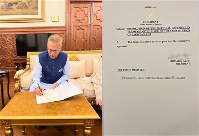 Islamabad:Just three days before the completion of its five-year tenure, Pakistan President Arif Alvi has dissolved the National Assembly shortly after a summary signed by Prime Shehbaz Sharif advising the dissolution of the Lower House of Parliament, was sent to the Presidency.