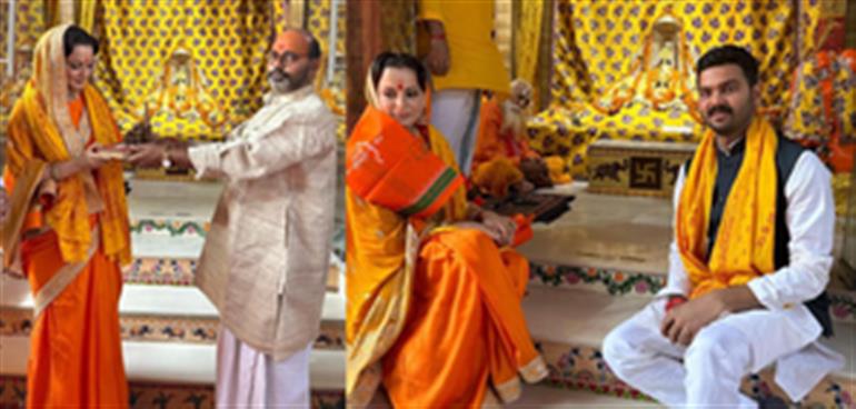 Ayodhya:A day ahead of the release of the highly anticipated movie ‘Tejas’, actress Kangana Ranaut visited Ram Mandir in Ayodhya, Uttar Pradesh, to seek the blessings of Lord Rama.