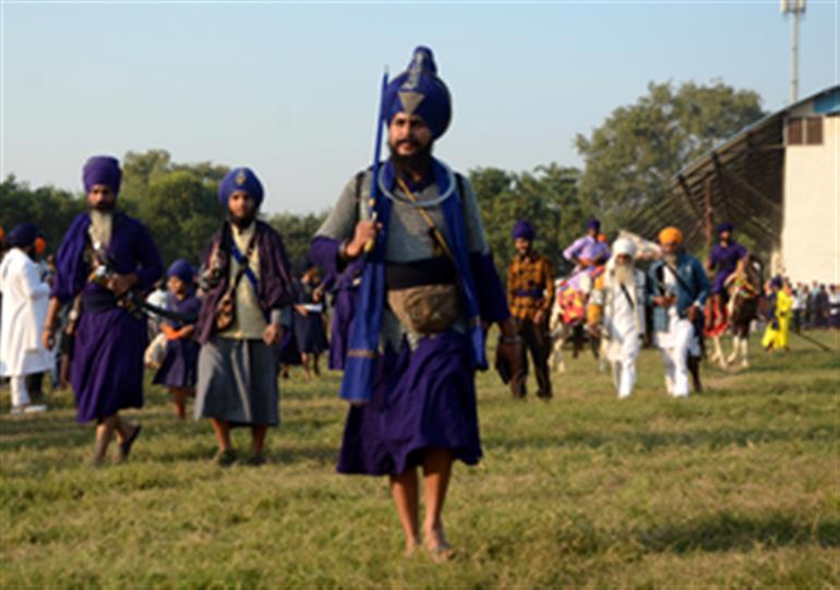 Wearing traditional dresses, carrying weapons and riding horses, hundreds of Nihang Sikhs performed the Gatka martial art, a major attraction for the visitors. The three-day celebrations coincide with the Hindu festival Holi.
