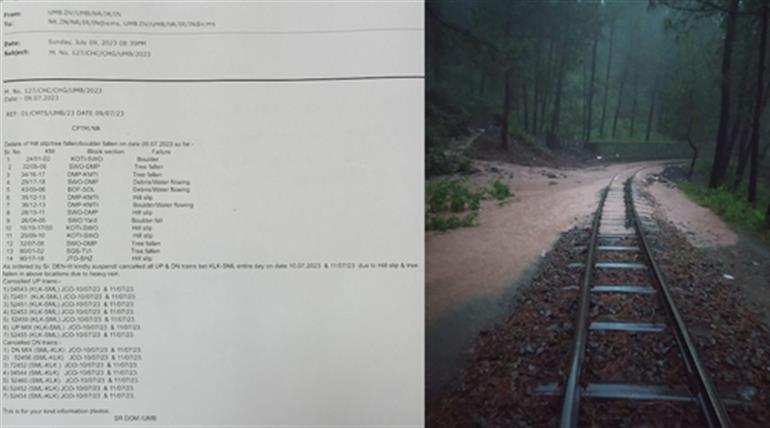 Landslides were also reported at several places along the tracks in Solan district, some 65 km from the state capital.