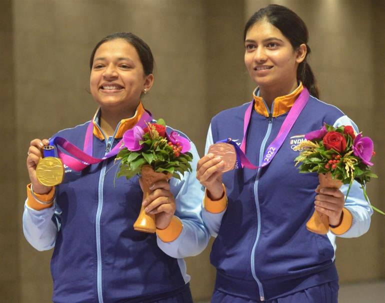 Sift Kaur Samra won the Gold medal with a new world record in the individual category in the 50 Mtr Rifle 3 position with 469.6 points at Hangzhou. In the same event, another Indian shooter Ashi Chouksey won the bronze medal. Sift also won the Silver medal in the team event of 50 Mtr Rifle 3 Position.