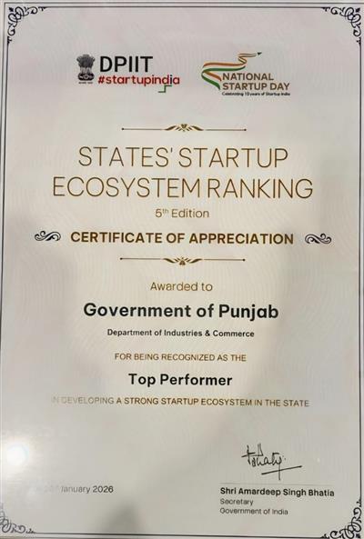Again Recognised as ‘Top Performer’ in States’ Startup Ecosystem Ranking by Government of India: Sanjeev Arora